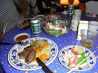 17:00シャモニーに戻ってきた。帰り観光協会で明日の天気を確認しに行く。明日明後日と雨の予報だ。ゆっくり休養するしかないだろう。お天気ばかりはどうすることも出来ない。 今日はスーパーで夕食の買い物をする。ステーキと海老サラダにする。 お肉は赤身が多いが、やわらかくて美味しかった。 タマちゃんもレストランで食べるより美味しいと大満足だった。やっぱり靴を脱いで、くつろげるのがいいんでしょうね。 |