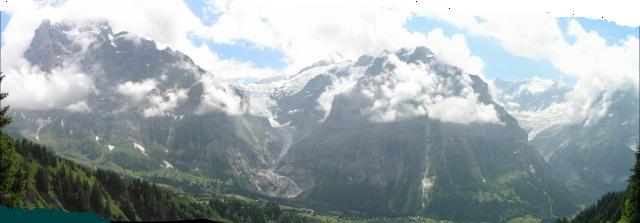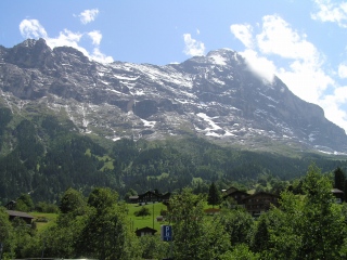 | さっきまで黒い雲がかかって、何も見えなかったアイガーの北壁も雲が切れて見えてきました。 | ![]() | |