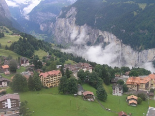 ロープウェーで一気に上っていきます。 ウェンゲンのかわいい街といくつかの滝が見えます。 なかなかいい景色です。 | |